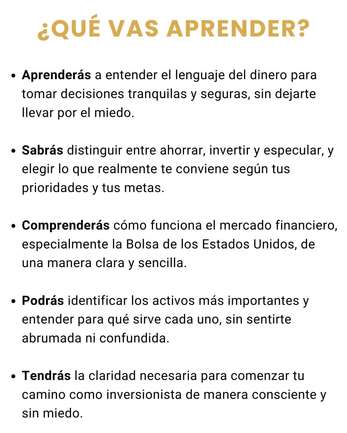 Está escrita pensando en mujeres que nunca han invertido o sienten que no entienden nada.